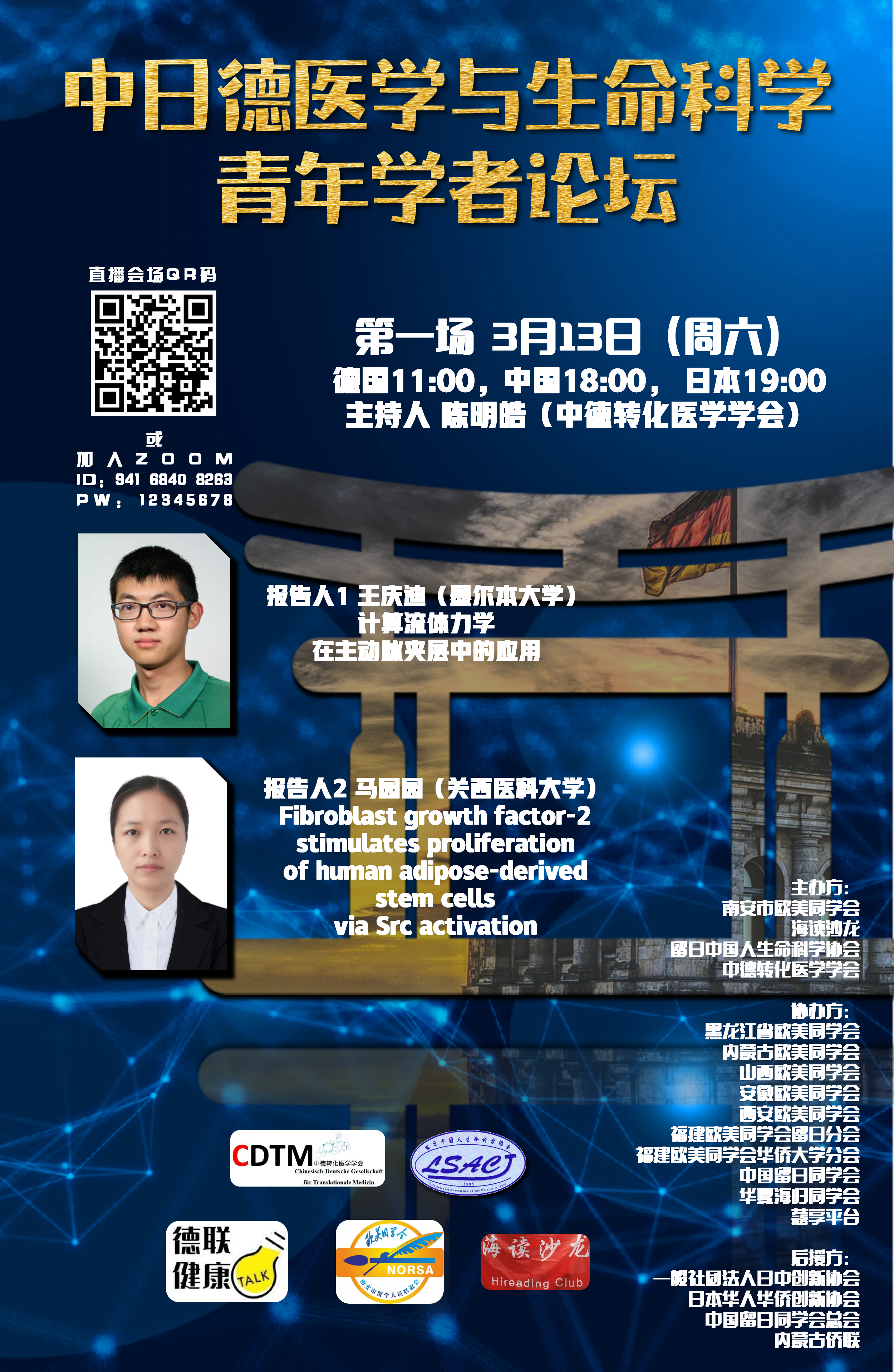 中日德医学与生命科学青年学者论坛:为了促进中国与德国,日本在医学与生命科学领域青年学者的科研交流,主办方特别邀请了来自三国科研单位与院校的青年学者开展在线论坛。本次在线论坛分成三场,分别在3月13日,3月27日,4月10日举办。同时,为了吸引更多人才进入医学与生命科学领域,本次论坛邀请了黑龙江省,内蒙古,山西省,安徽省,陕西省,福建省等各地欧美同学会与留学归国人员组织,以及海内外华人华侨团体参与协办,论坛信息通过各团体平台进行宣传。