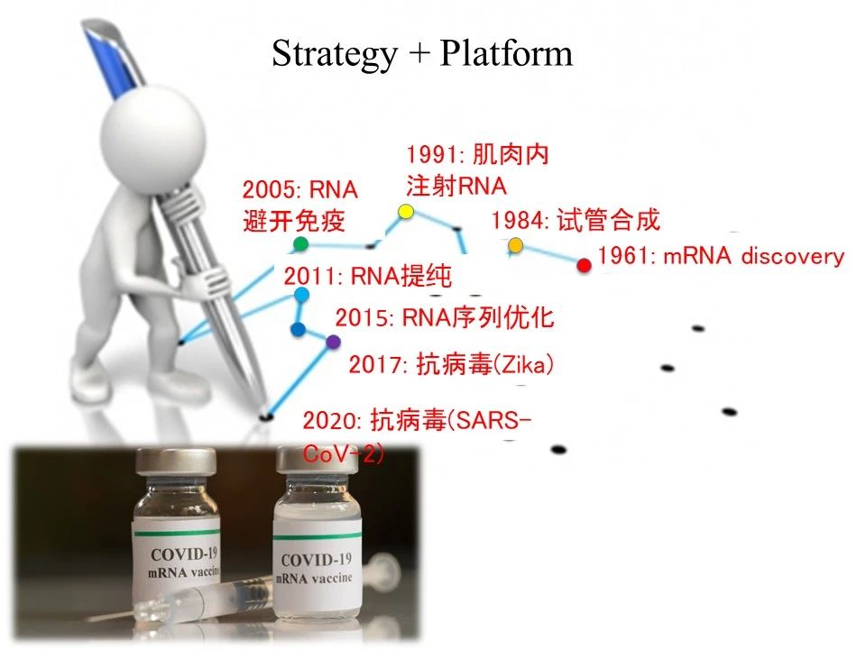 王丹教授首先为我们带来了精彩的演讲,题目是“ RNA vaccines: a new era of vaccinology and cancer therapy”。王丹老师介绍说,Jacob和Meselson于1961年首次发现了mRNA。在1984年,mRNA于试管内合成。1991年,首次于小鼠肌肉内注射RNA。2005年RNA避开免疫被发现。2011年RNA提纯和四年后序列优化的研究标志着RNA研究步入成熟阶段。王老师说,随着2017年寨卡病毒(Zika virus,ZIKV)的抗病毒研究,及去年开始的SARS-CoV-2抗病毒研究,mRNA疫苗作为基因治疗领域的后起之秀,真正暴露在大众的视野之下。