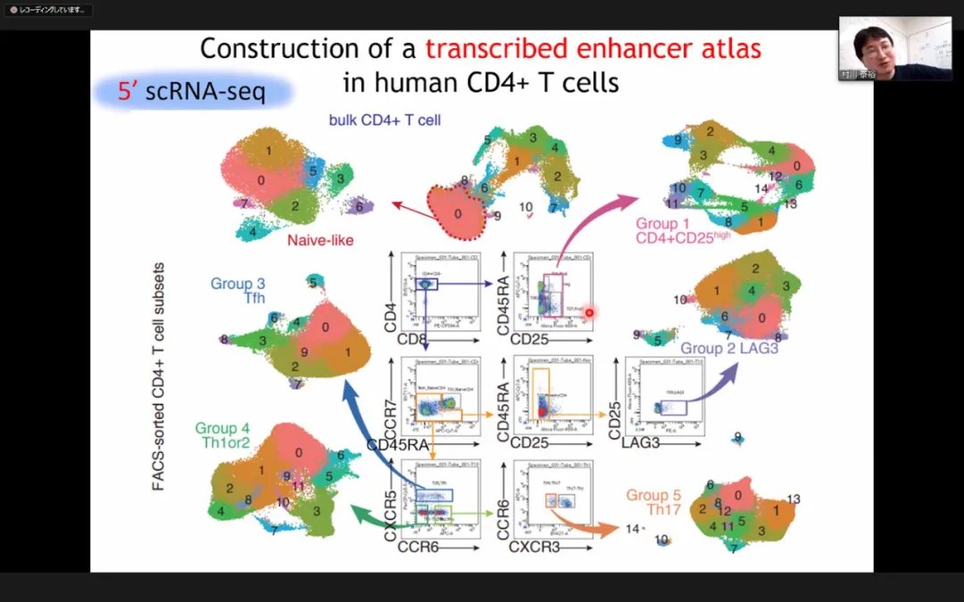村川泰裕教授为大家带来了题为“新しいシングルセルトランスクリプトーム技術が切り拓くヒト免疫学と疾患メカニズムの解明”的精彩演讲。村川教授首先介绍说随着新的革新技术登场,人类基因序列解读已可以逐步实现。2016年针对前体mRNA治疗脊髓性肌肉萎缩的靶向药成功问世,2020年mRNA新冠疫苗也大量投入使用,2021年在Nature杂志中已有通过对单细胞序列解析非编码基因的文章报道。