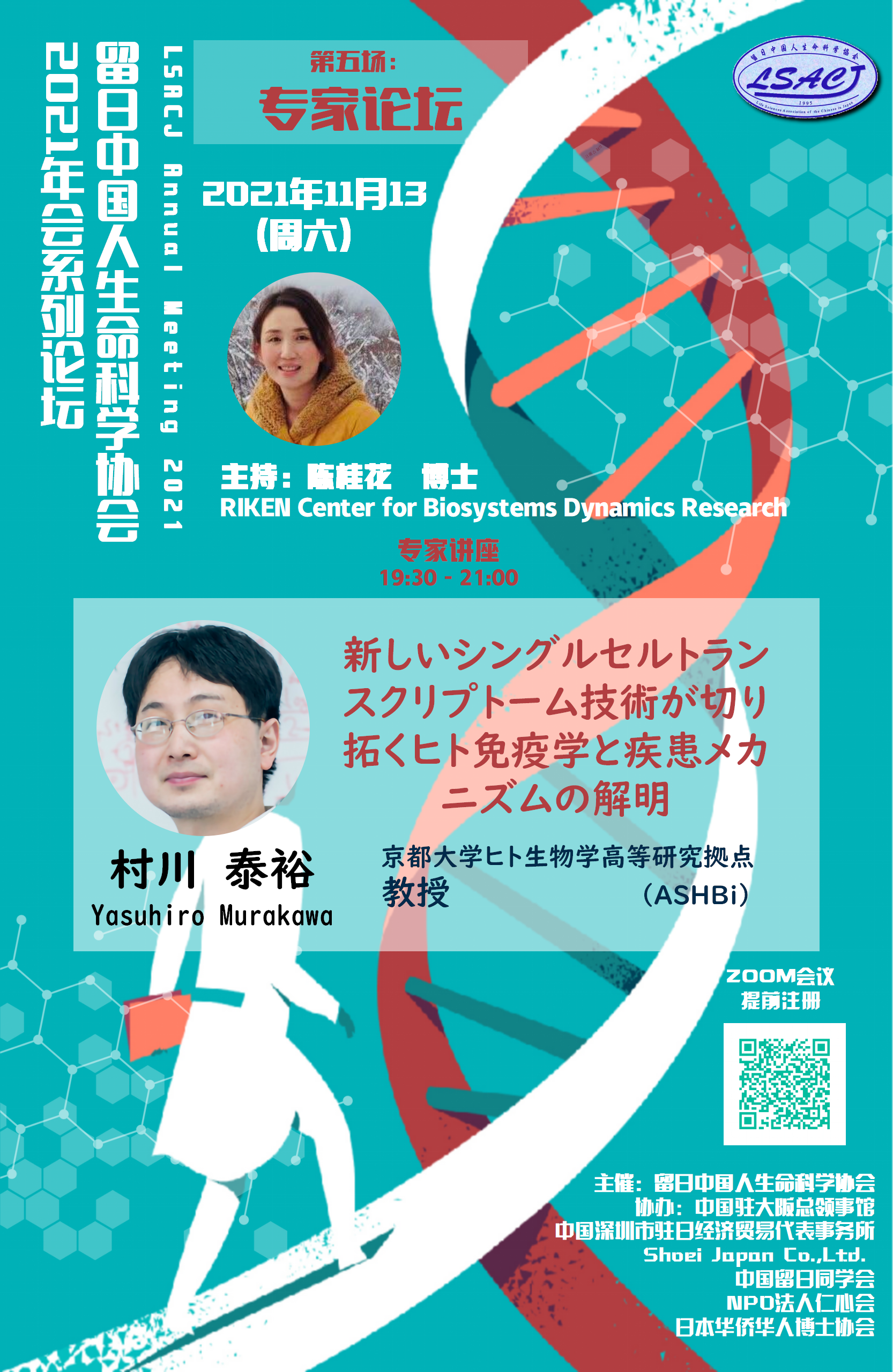 北京时间2021年11月13日18:30,东京时间19:30,留日中国人生命科学协会在线上举办了2021年会系列论坛第五场--“专家论坛”。本次论坛由陈桂花博士主持,我们邀请到京都大学ヒト生物学高等研究拠点(ASHBi)村川泰裕教授为大家做演讲,协会成员们及各界学者、学生们参加了本次年会论坛活动。