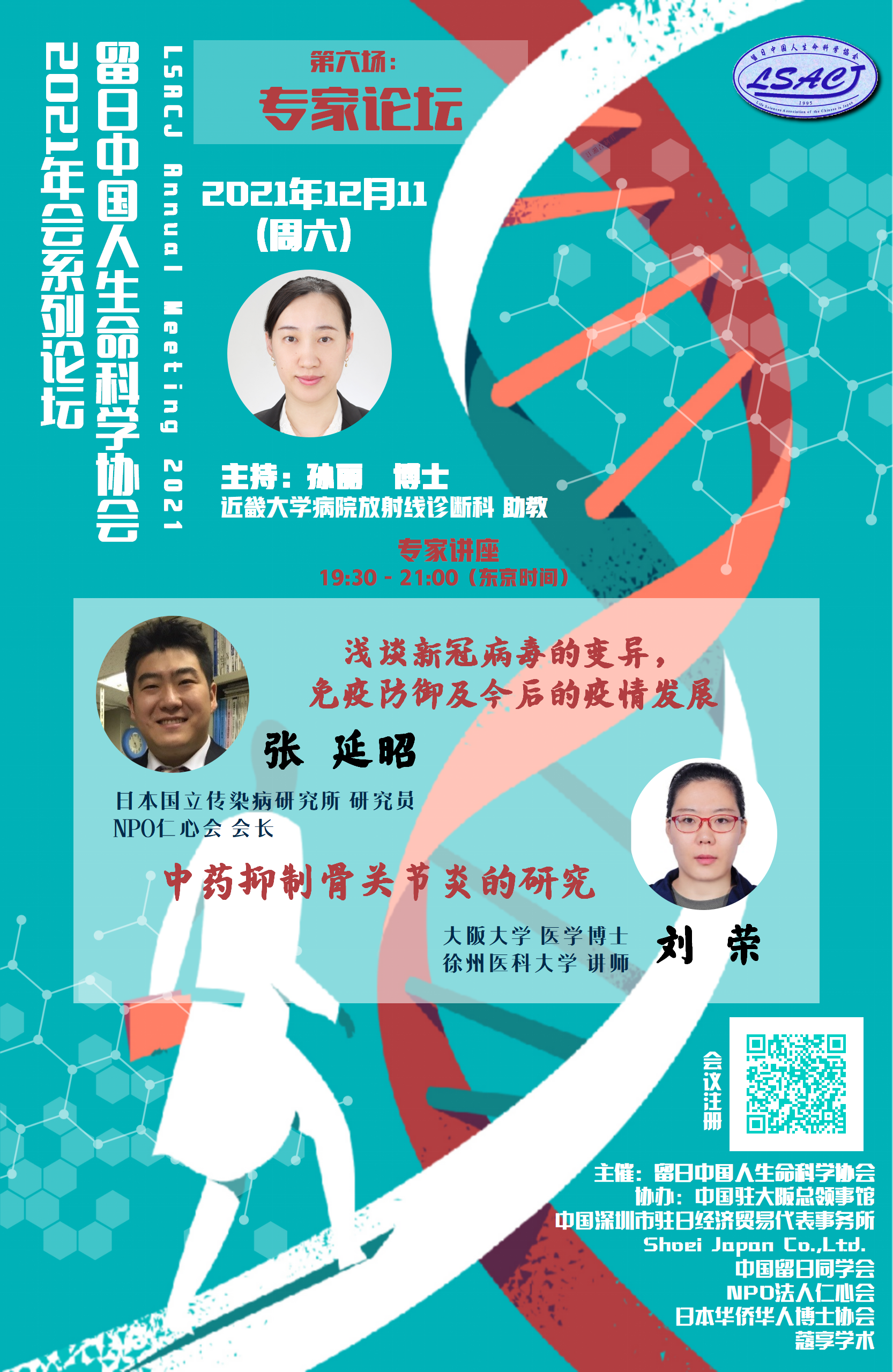 就在12月11日星期六的晚上,留日中国人生命科学协会2021年会系列论坛第六场,我们期待您的莅临!